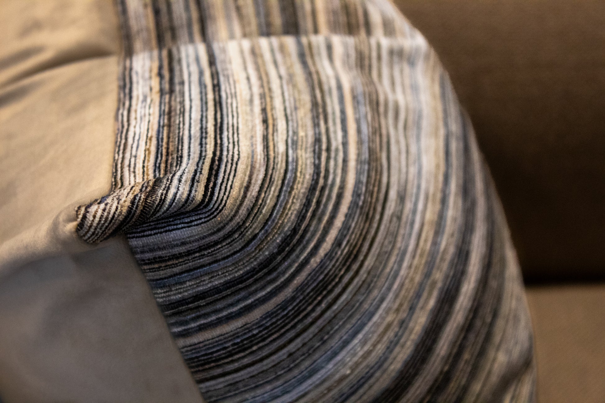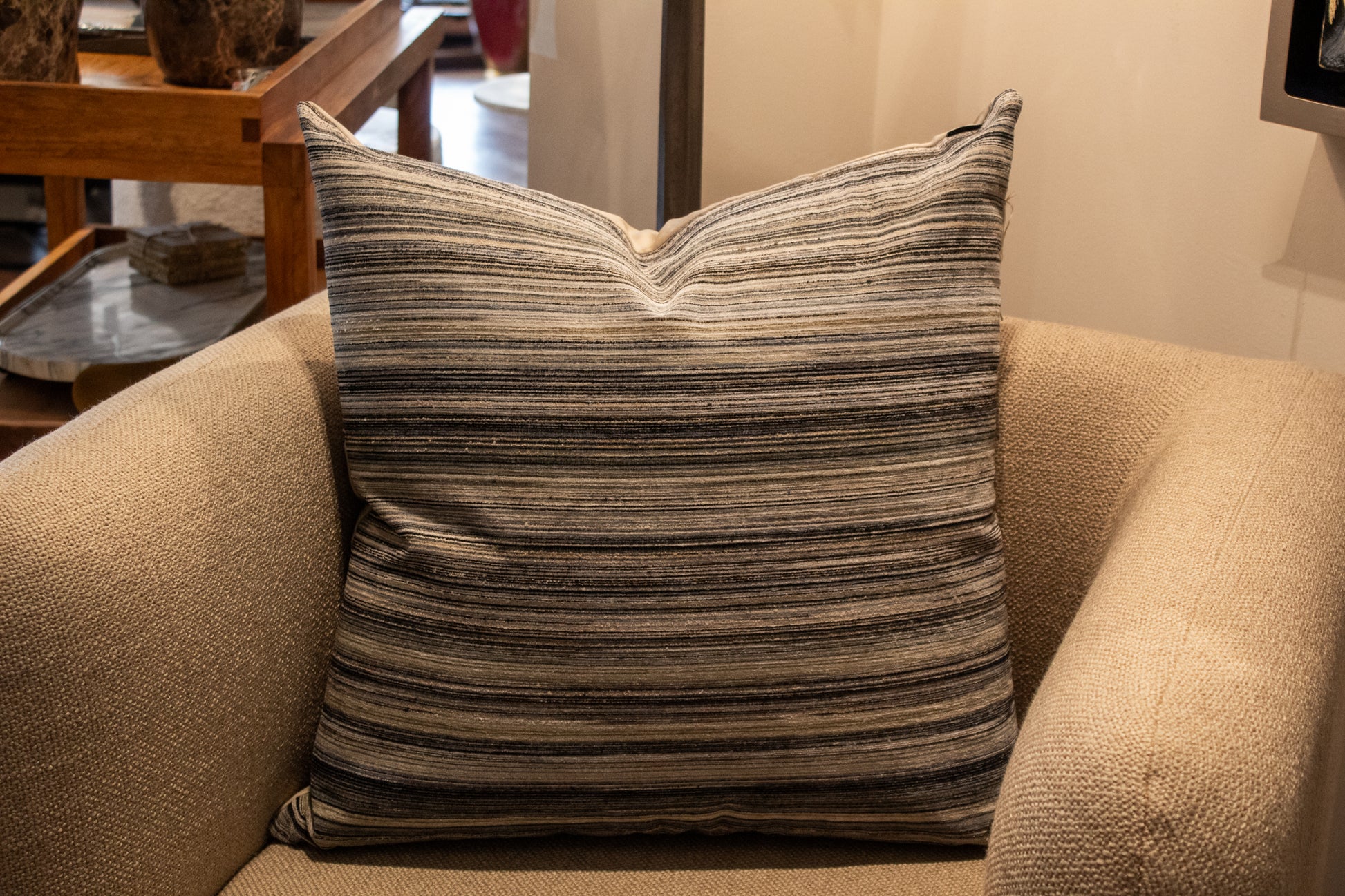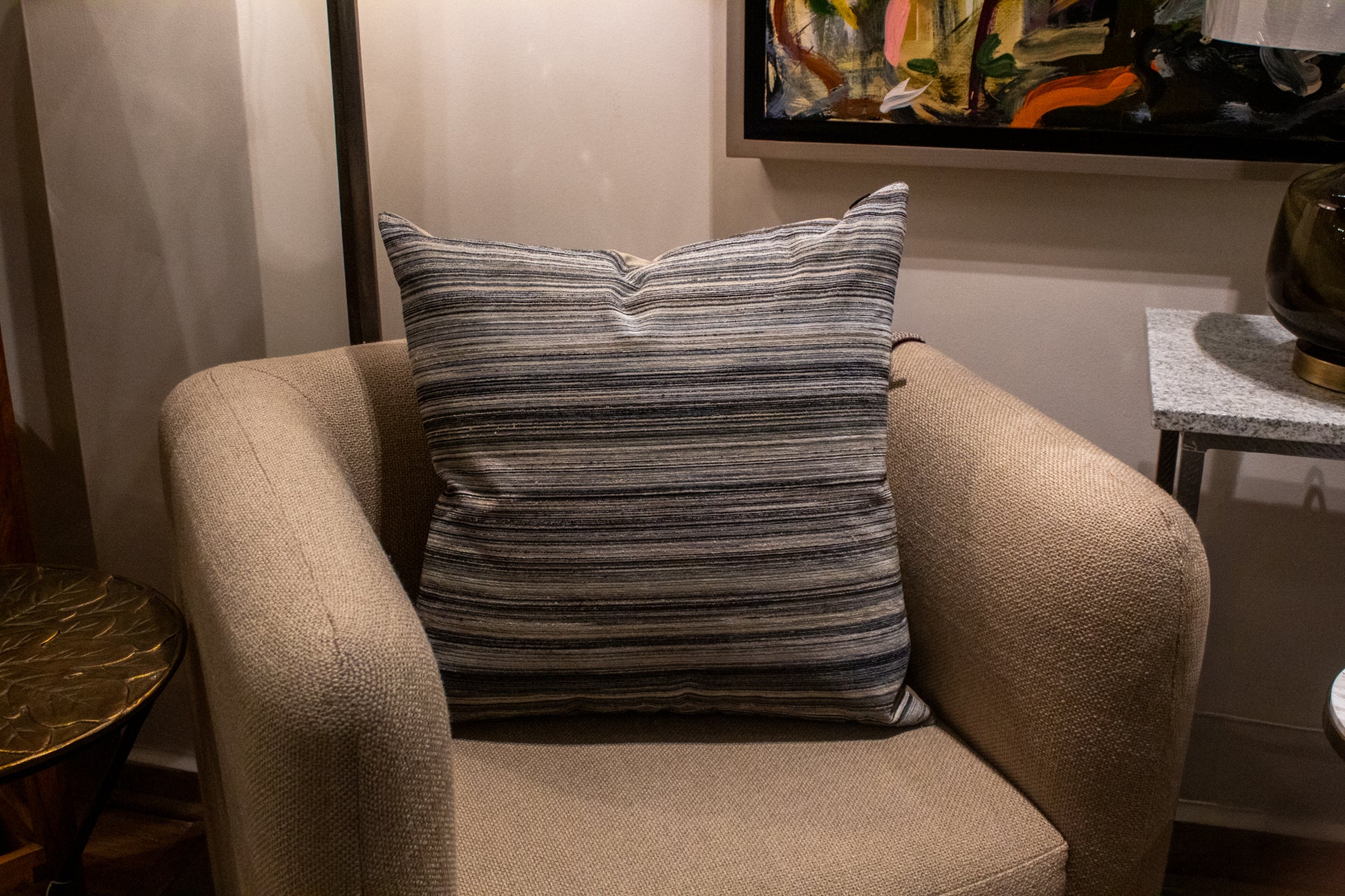 Inspirado en horizontes y transiciones tonales, este cojín aporta elegancia y ritmo visual al espacio. Ideal para interiores contemporáneos, sofisticados o tipo hotel-luxury. Combínalo con tonos gris, arena, azul oscuro o negro para lograr una composición equilibrada y refinada. Perfecto como pieza acento en sillones o áreas de descanso.